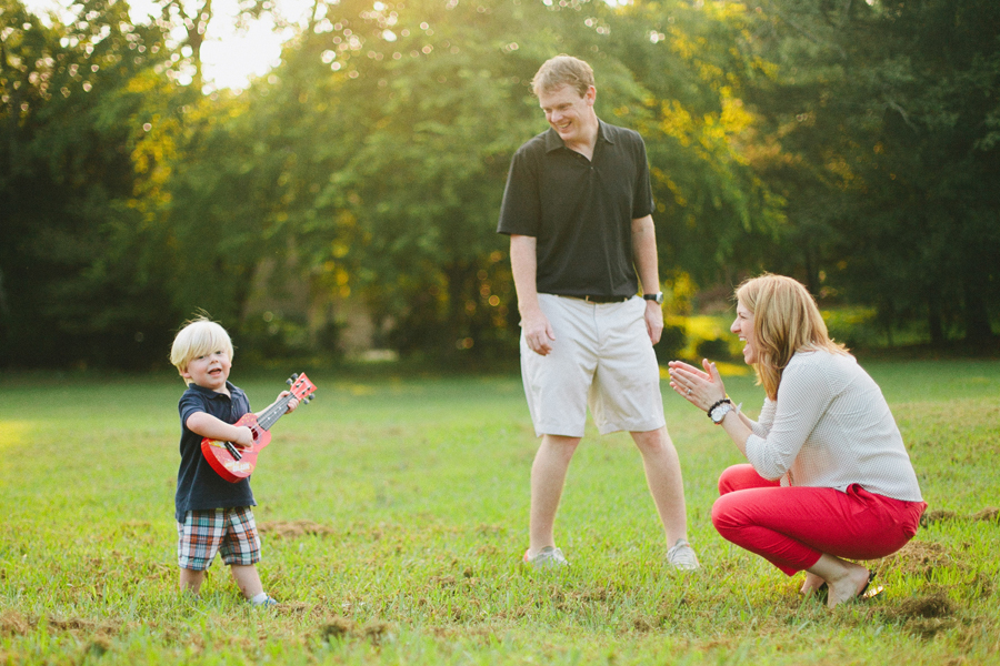 And oh, how right I was! Katie and her husband Ashley have a precious son, Camden, and he and I hit it off right away. (Which always makes shooting toddlers a lot easier! I always have mad respect for child photographers after doing family sessions… you gotta have a lot of energy to keep up with the young ones. :)) We headed to a nearby park and spent the evening running around, playing, and listening to Camden serenade us while playing his guitar. The kid is destined for musical greatness, I just know it!