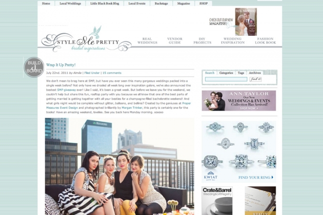 Preston Bailey used a photo from last summer’s fabulous bachelorette party with Proper Measures on his inspiration blog. Fun! (We’ll look over the fact that he mistook the Birmingham skyline for New York City. ;) )
