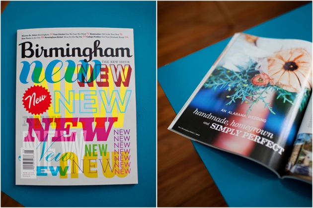Mary Beth and David’s handmade lakeside wedding was featured in the January 2012 issue of Birmingham Magazine