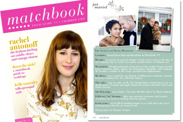 Niurka and Eric’s Christmas Vermont wedding was featured in the May 2011 issue of Matchbook Magazine