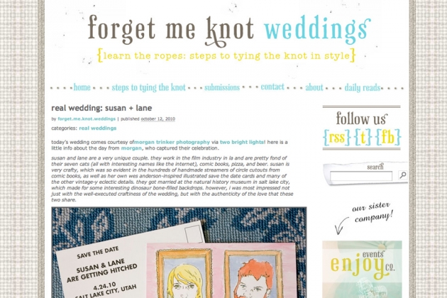 Lane and Susan’s Wes Anderson-inspired DIY wedding was featured on the Forget Me Knot Weddings blog