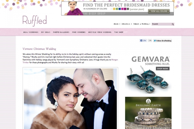 Niurka and Eric’s Christmas Vermont wedding was featured on Ruffled Blog