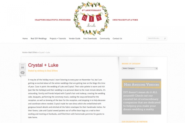 Crystal and Luke’s wedding was also published on the DIY Bride blog