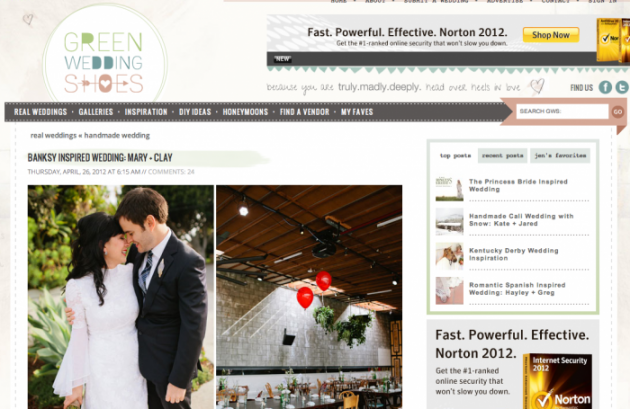 Mary and Clay’s Los Angeles wedding was featured on Green Wedding Shoes.
