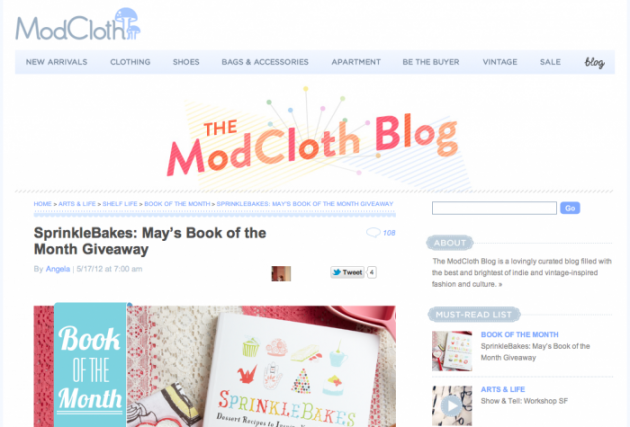 One of my very favorite websites for years now, ModCloth, did a giveaway of Heather’s Sprinklebakes book and included the promo video I created for her.
