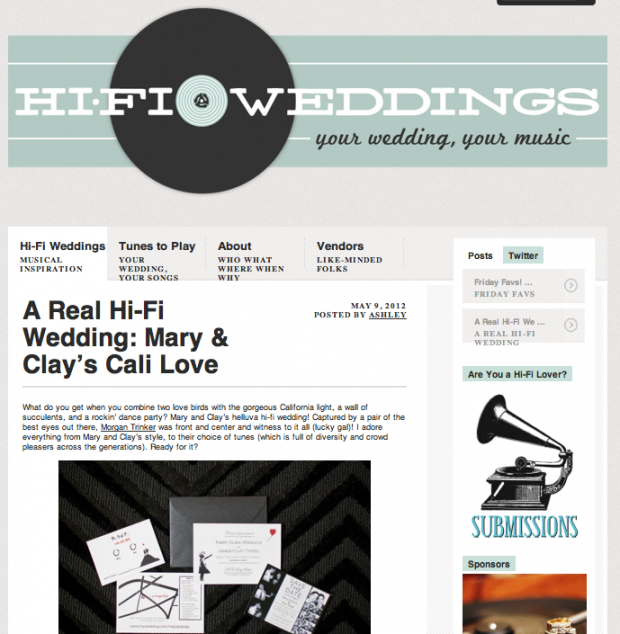 Mary and Clay’s wedding was also featured on my good friend Ashley’s super cool wedding blog, Hi-Fi Weddings.