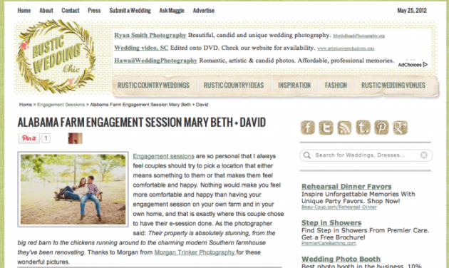 Mary Beth and David’s farm engagement session was featured on Rustic Wedding Chic.